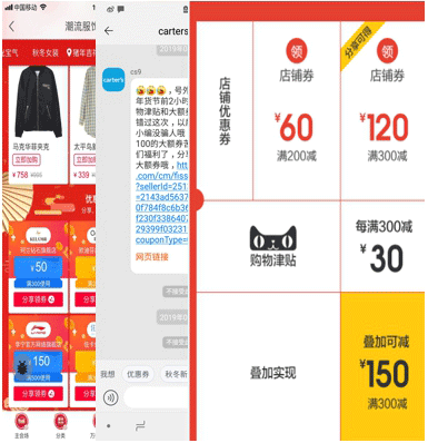 ①消费者前台看到裂变券的入口:会场、店铺首页、客服引导等,或者分享出去的淘口令,复制打开手淘就能看到进度。